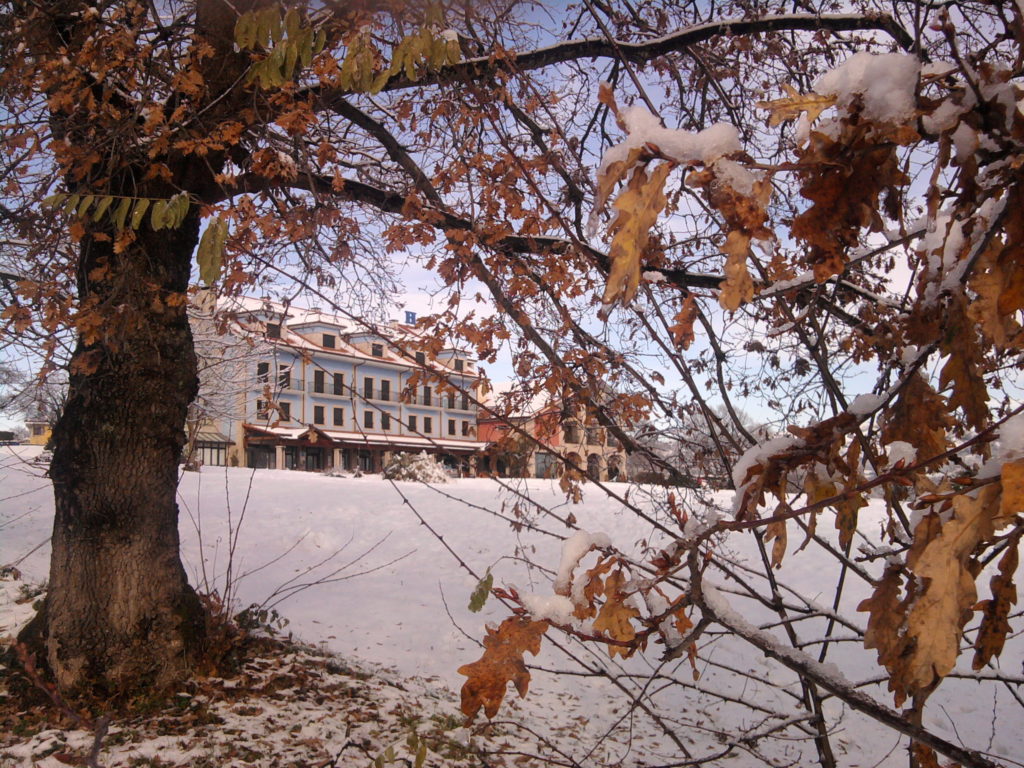 Nuestro hotel tiene hermosos balcones, terrazas y un amplio porche estratégicamente situado en el centro de una cuidada finca de treinta mil metros cuadrados de prados y espacios ajardinados totalmente delimitada por robles y castaños bicentenarios, que nos aíslan de los ruidos creando un auténtico clima de calma, paz y tranquilidad.